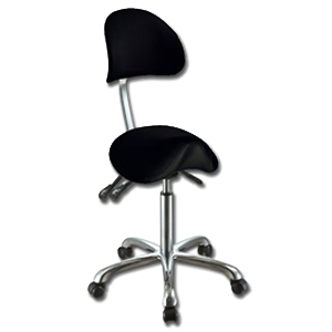 Sgabelli ergonomici e confortevoli con seduta a sella e tre leve con pistone a gas consentono la regolazione dell’altezza, inclinazione dello schienale e della seduta.