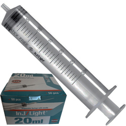 Siringhe / Siringa ipodermica a 3 pezzi senza ago, con cono Luer eccentrico da 20ml, conf. da 50pz.