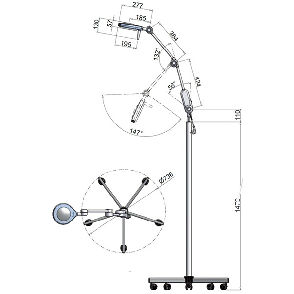 Lampada scialitica / Lampade scialitiche / Lampada Operatoria Saturno a LED su carrello è una lampada senza ombre adatta alla piccola chirurgia, ginecologia ed esami.
