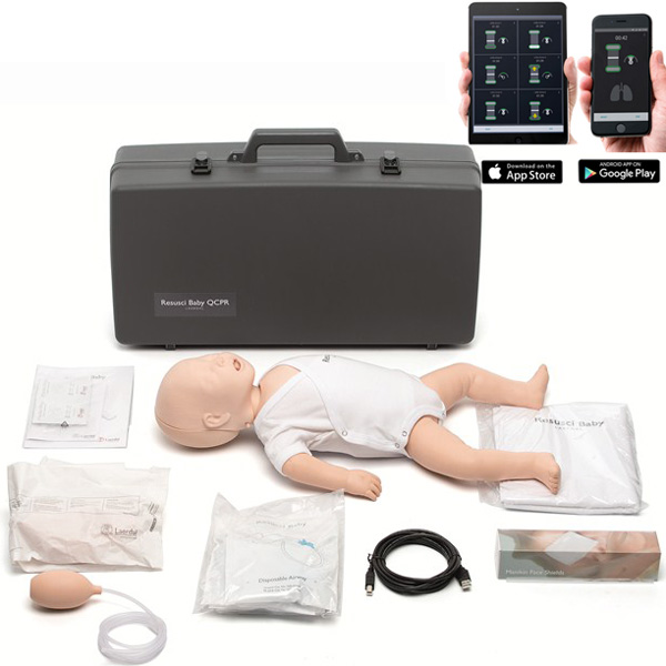 Manichino didattico simulatore per rianimazione neonato per esercitazioni Resusci baby QCPR - Addestramento alla RCP. Resusci Baby® QCPR® definisce un nuovo standard per la formazione alla RCP di Qualità. I nuovi dispositivi di feedback forniscono ad allievi e istruttori informazioni chiare sia su come migliorare le proprie performance, l'opportunità di migliorare le proprie competenze attraverso il debriefing, nuove possibilità di formazione ancora più efficace e il salvataggio di tutti i dati per la successiva analisi. E' possibile utilizzare Resusci Baby® QCPR® con SkillGuide per la formazione basata su singole sessioni individuali oppure con SimPad SKillReporter per un feedback più dettagliato. Il manichino Resusci Baby QCPR consente di praticare le procedure di RCP in maniera precisa e realistica. La misurazione delle compressioni e delle ventilazioni offre indicazioni precise e accurate. Le funzionalità di debriefing e il feedback dettagliato consentono agli allievi di apprendere le procedure di RCP e di migliorare le loro prestazioni più facilmente.