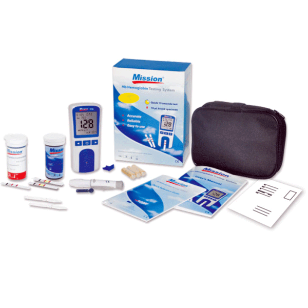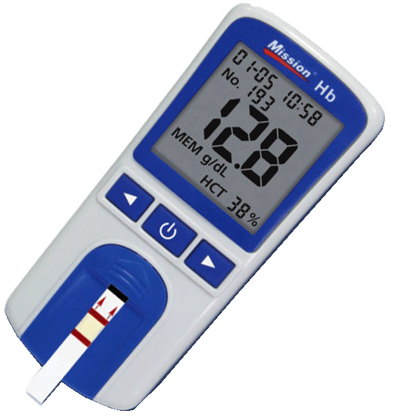 LETTORE PORTATILE ANALIZZATORE EMOGLOBINA MISSION - HB/HCT - con borsa e accessori - 1000 memorie - risultato <15sec.