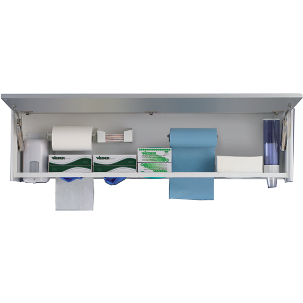 Pensile multifunzione per organizzare dispenser di prodotti monouso. Tutti i componenti e le fessure sono modulari e possono essere organizzati per le necessità dell’utente.