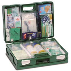 • KIT PRIMO SOCCORSO VALIGETTA MULTIGREEN ALLEGATO 1 maggiorato - da 3 lavoratori - 44,3x33,8x14,7cm - indicata per rischi specifici: aziende agricole, edilizia, indutrie chimiche, meccaniche e del legno