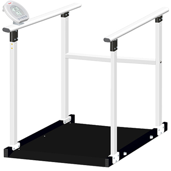 • PESATURA IN PIEDI: si può installare una struttura laterale metallica (corrimano) che permette di pesare il paziente in ha difficoltà di rimanere in posizione eretta.
