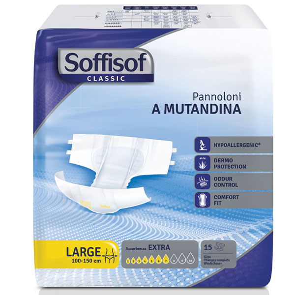 Pannolone Assorbente mutandina elasticizzata per incontinenza moderata dall'elevata capacità di assorbenza SOFFISOFT CLASSIC.
