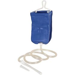 La sacca di plastica o il contenitore rigido hanno una capacità di 2 litri, con scala graduata, cannula anale per clisteri e cannula vaginale d’irrigazione.